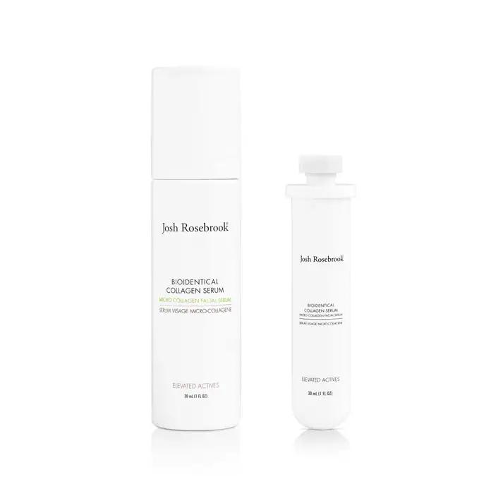 The Josh Rosebrook Bioidentical Collagen Cream is a deeply restorative moisturizer formulated to improve elasticity, firmness, and hydration. Featuring bio-fermented vegan collagen, niacinamide, ceramides, and hyaluronic acid, it mimics the skin’s natural structure to strengthen and replenish the barrier while visibly smoothing fine lines.