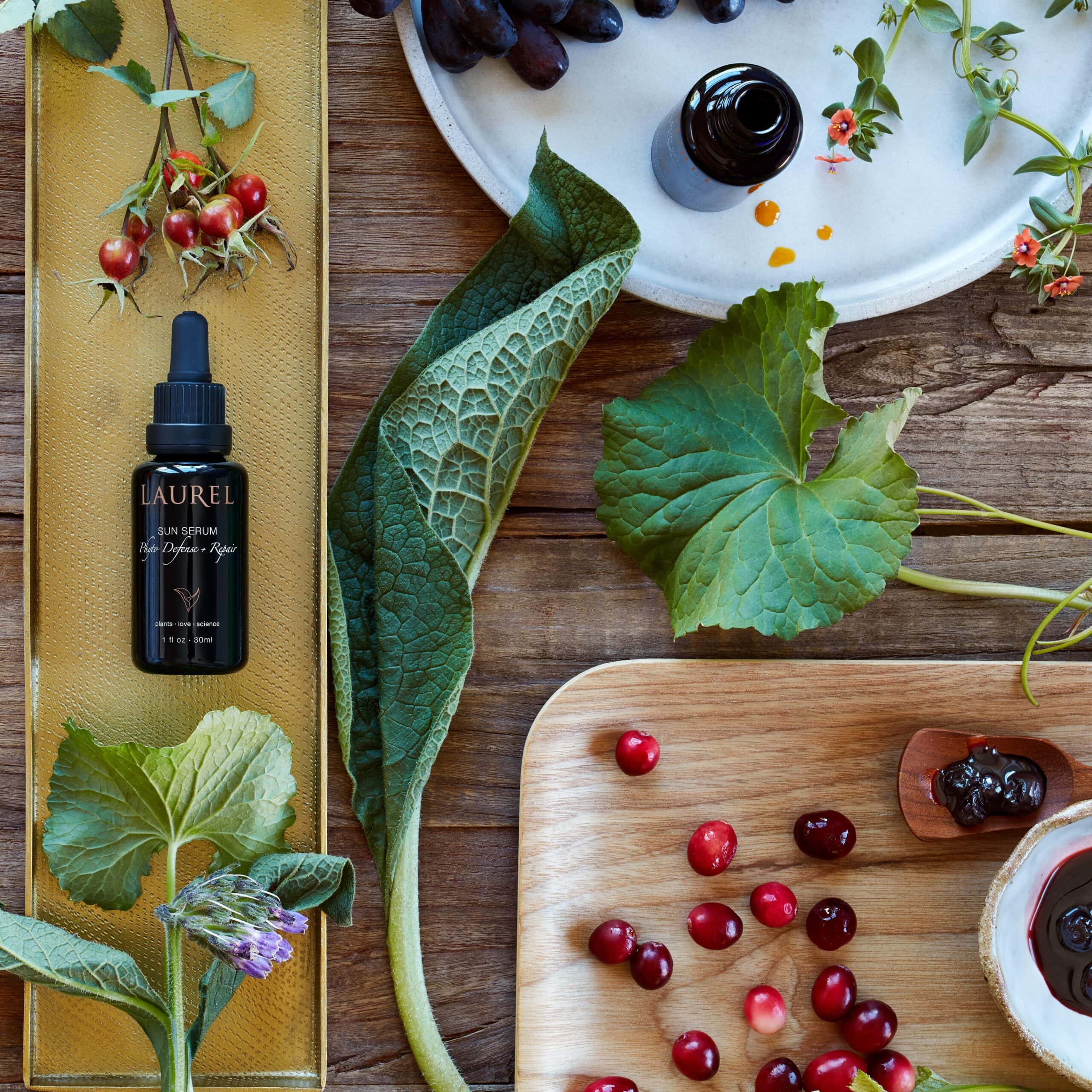The Laurel Sun Serum is a 100% whole-plant formula designed to defend against environmental stress, UV exposure, and oxidative damage — without synthetic sunscreen agents. Bursting with antioxidants, phytonutrients, and carotenoids, this serum strengthens your skin’s resilience while boosting radiance and hydration.